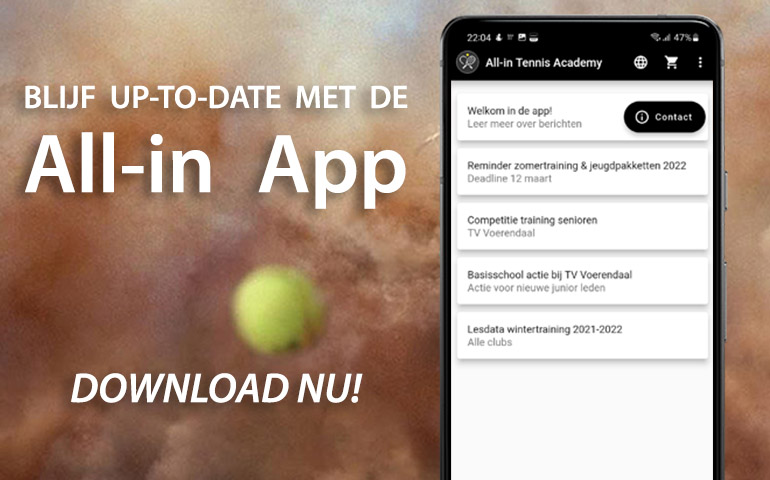 Met de All-in Tennis & Padel Academy app blijf je altijd up-to-date door het ontvangen van notificaties en het kunnen lezen van berichten.